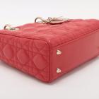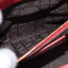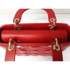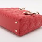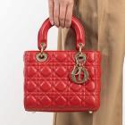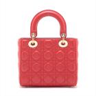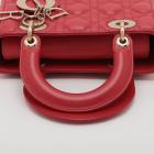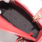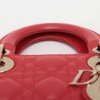 Christian Dior small My Lady ABCDior bag in red lambskin with Cannage stitching. Featuring gold-toned hardware, including Dior letter charms. The brown logo printed fabric interior covered by a leather flap, containing patch and zipper pockets. Approximate dimensions: 20cm(L) x 18cm(H) x 8.5cm(D), 8.5 handle drop, 56cm detachable strap drop. With Entrupy Certificate of Authenticity. (Pre-owned)