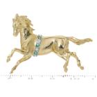 Horse design brooch with round Natural Diamonds totalling approximately 0.02ct and round Natural Emeralds totalling approximately 0.03ct. 18ct yellow gold. Weight: 9.0g. (Pre-owned)