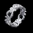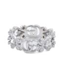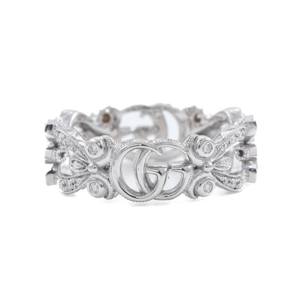 Gucci Flora GG Diamond ring with round Natural Diamonds totalling approximately 0.35ct (Estimated grading: F-G VS). 18ct white gold. Gucci stamped size 9, measures as Australian size: I - ring resizing is not recommended. Band width: 5.5mm - 6.0mm. Made in Italy. Weight: 4.2g. (Pre-owned)