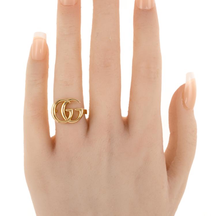 Gucci GG Running Ring. 18ct yellow gold. Ring size: J1/4,- ring resizing is not recommended. Band width: 2.6mm. Weight: 7.8g. (Pre-owned)