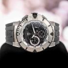 Harry Winston Ocean Sport zalium automatic mens watch. Black chronograph skeleton dial, date, case diameter: 44mm, adjustable max wrist size: 20cm, Swiss made. Ref# 411/MCA44ZC.W. With Harry Winston black rubber strap and clasp. With Certificate of Authenticity, Harry Winston International Warranty Certificate, Harry Winston International Warranty Booklet dated 11/18/2012, Harry Winston Invoice dated 18/11/2023 and Harry Winston box. 3 month FSA warranty. (pre-owned)