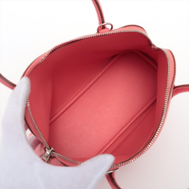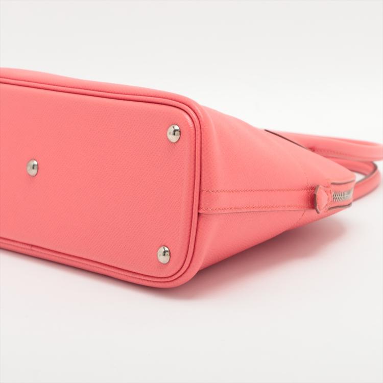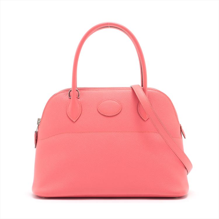Hermes Bolide 27 in Veau Epsom in Flamingo colour (R in square, circa 2014). Featuring silver-toned hardware, rolled leather top handles. The top zipper opens to a matching leather lining interior with a patch pocket. Approximate dimensions: 26cm(L) x 18.5cm(H) x 9.5cm(D), 10.5cm handle drop and 45.5cm detachable strap drop. With Entrupy Certificate of Authenticity. (Pre-owned)