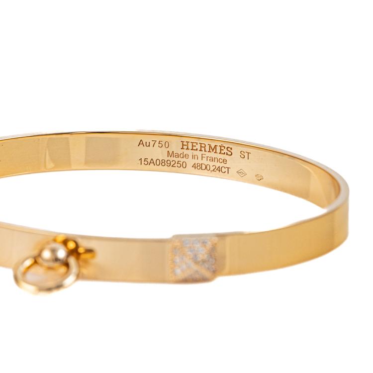 Hermes Collier De Chien ST bracelet (small model) with 48 round Natural Diamonds totalling 0.24cts. 18ct yellow gold. Made in France. Interior circumference: 16.4 cm. Width: 6mm. Weight: 24.6g. With Certificate #418615. (Pre-owned)