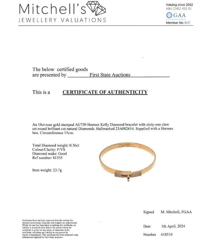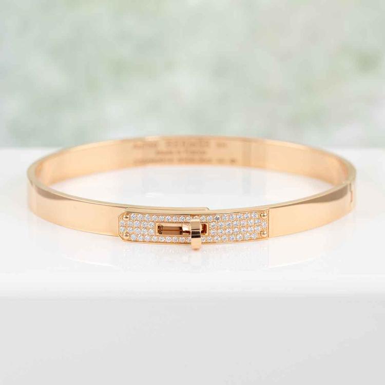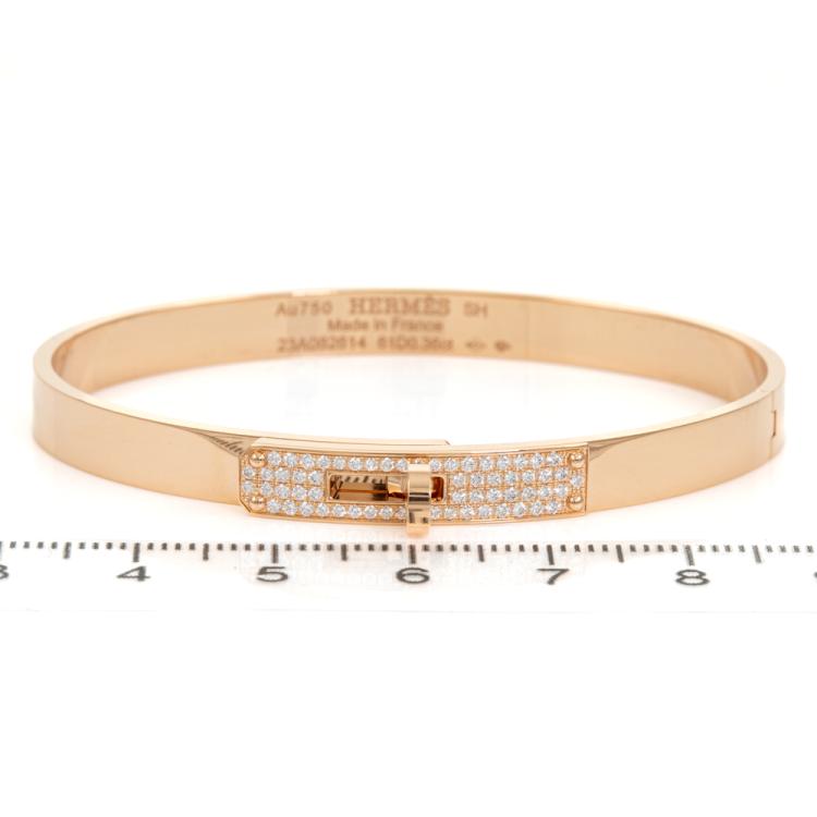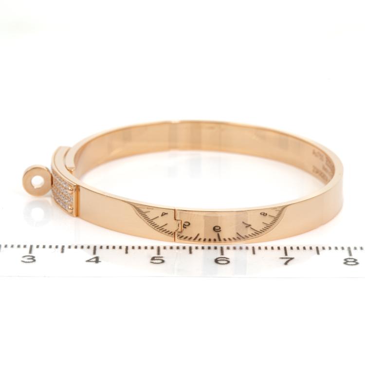 Hermes Kelly Diamond bracelet small model with round natural Diamonds totalling 0.36cts (Estimated grading: F VS). 18ct rose gold. Inner circumference: 15.8cm. Weight: 23.7g. With Hermes box. With Certificate 418510. (Pre-owned)