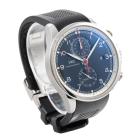 IWC Schaffhausen Portuguese Yacht Club stainless steel automatic mens watch. Black chronograph dial, date, case diameter: 45mm, adjustable max wrist size: 19.5cm, Swiss made. Ref #IW390204. With IWC Schaffhausen black rubber strap and clasp. With Certificate of Authenticity. 3 month FSA warranty. (Pre-owned)