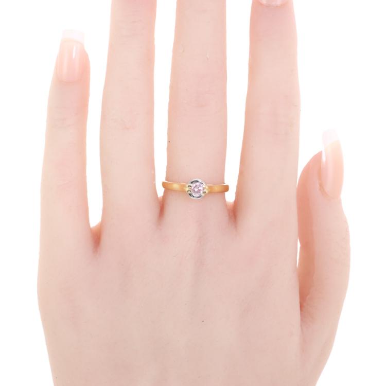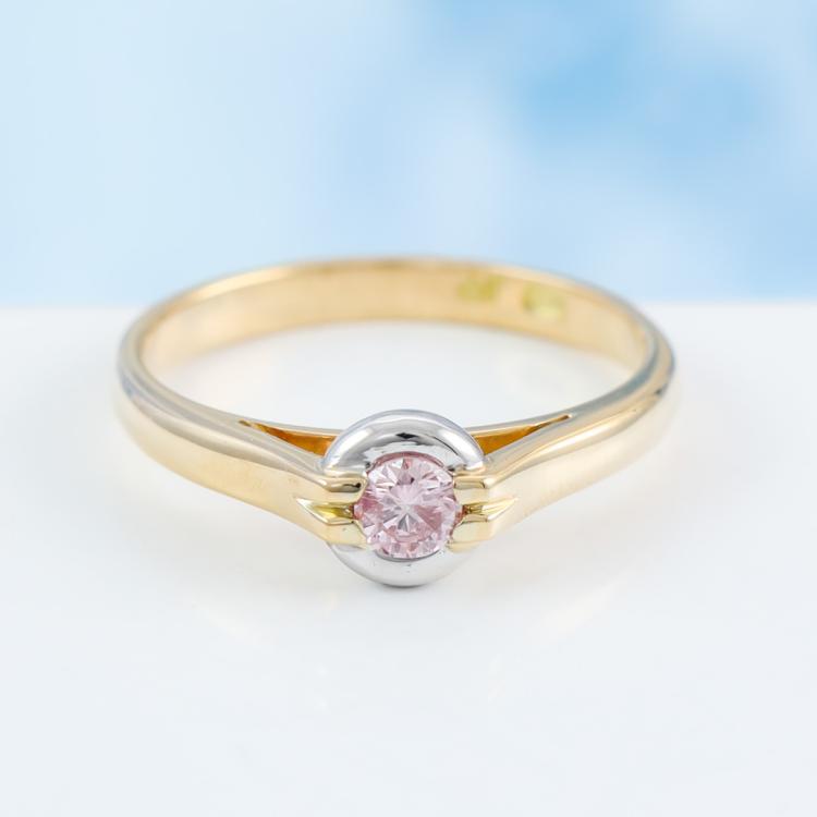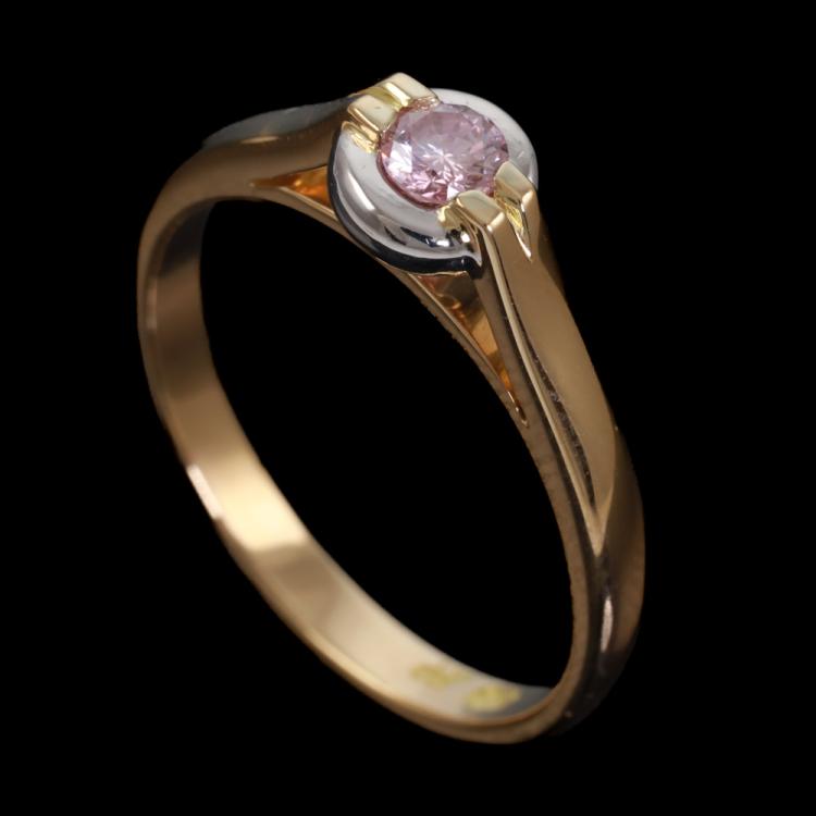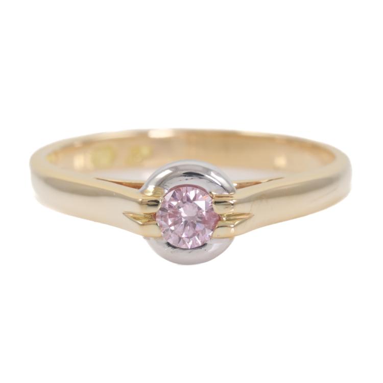J Farren-Price ring with centre round Argyle Natural Pink Diamond of 0.186ct (With GSL Report graded as Natural Fancy Light Pink P1 #AA69708, Origin: Argyle Deposit, Western Australian). 18ct yellow and white gold. Ring size N. Band width: 2.4mm. Weight: 3.8g. With J. Farren-Price Valuation #24/083. (Pre-owned)