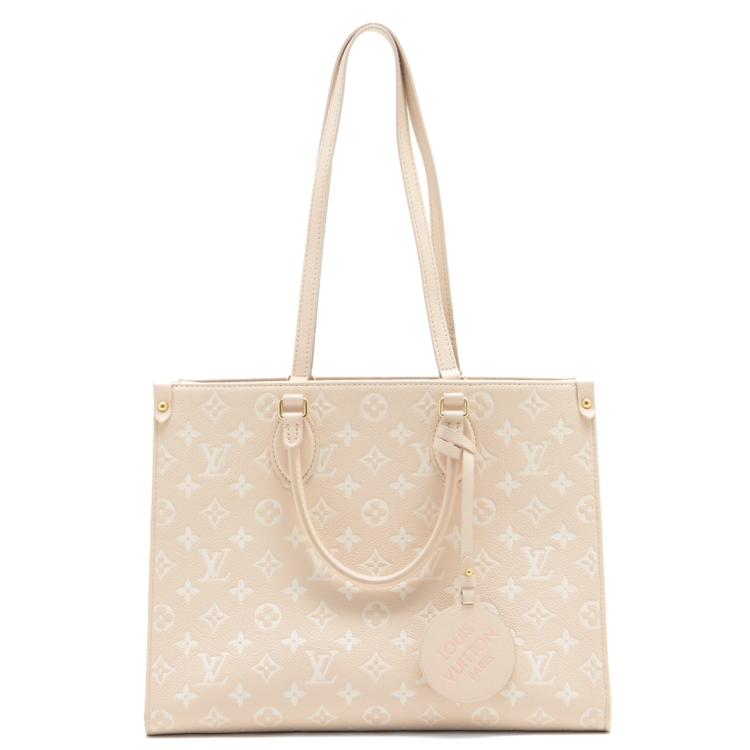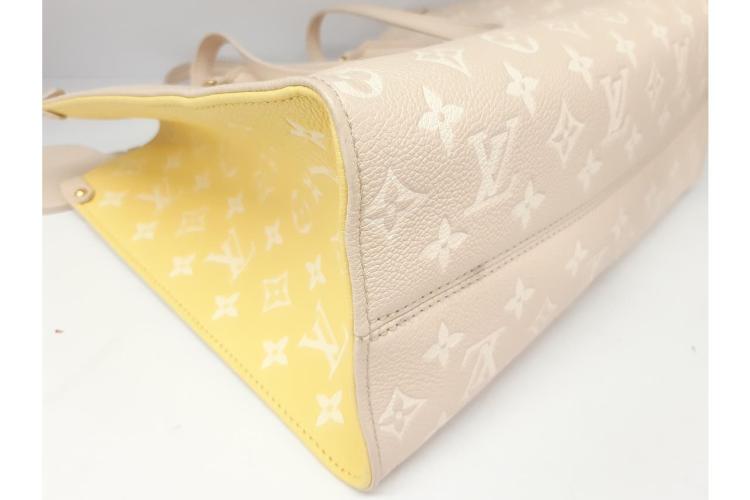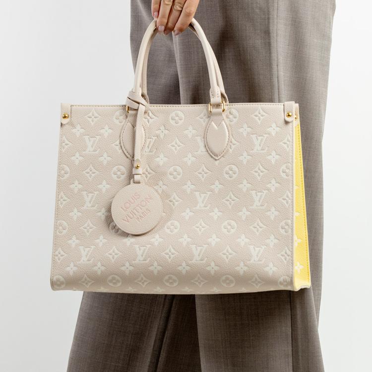 Louis Vuitton OnTheGo Spring in the City MM in Monogram Empreinte leather in multi-colour. Featuring gold-toned hardware, open top with a hook closure. The top opens to a microfibre lining interior with zipped and patch pockets. Approximate dimensions: 35cm(L) x 25cm(H) x 15cm(D), 12.5cm leather handle drop, and 27cm double leather shoulder strap. Accompanied by Louis Vuitton leather tag. With Entrupy Certificate of Authenticity. (Pre-owned)