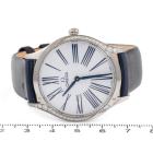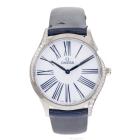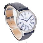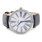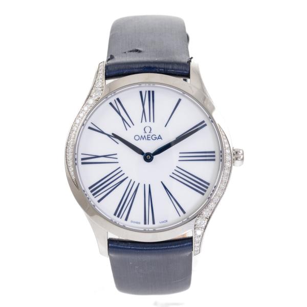 Omega De Ville Tresor stainless steel quartz ladies watch. White dial, Diamonds on bezel to lugs, case diameter: 36mm, strap length: 20cm, Swiss made. Ref# 428.17.36.60.04.001. With Omega blue fabric & leather strap and buckle. With Certificate of Authenticity. 3 month FSA warranty. (Pre-owned)
