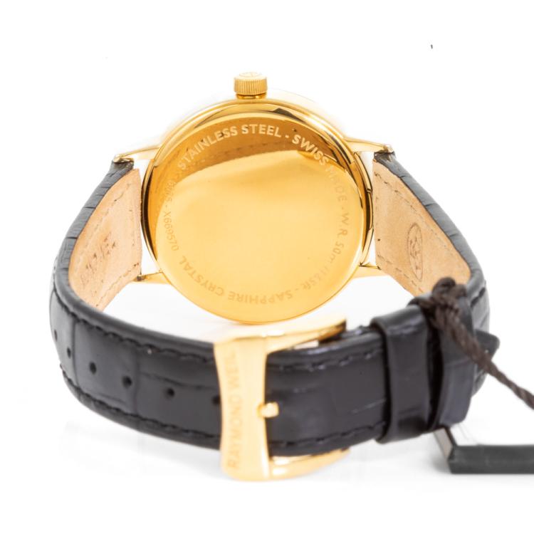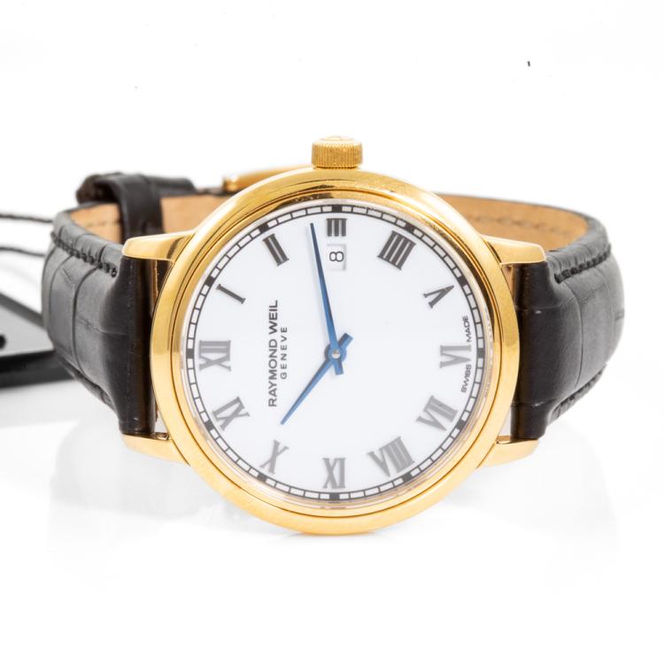 Raymond Weil Toccata stainless steel and yellow gold PVD plated quartz ladies watch. White dial, date, case diameter: 29mm, strap length: 18cm, Swiss made. Ref# 5985-PC-00359. With Raymond Weil black leader strap and buckle. With Undated Raymond Weil Guarantee card and Raymond Weil box. 12 month FSA warranty (As new, Note: case on original wrap)