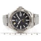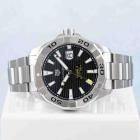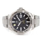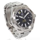 TAG Heuer Aquaracer stainless steel automatic mens watch. Black dial, date, case diameter: 43mm, wrist size: 18cm, Swiss made. Ref# WAY2010. With TAG Heuer stainless steel bracelet and clasp. With Certificate of Authenticity and TAG Heuer International Warranty Card dated 16/08/2017. 3 month FSA warranty. (Pre-owned)