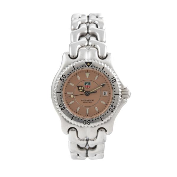 TAG Heuer Professional stainless steel quartz ladies watch. Salmon pink dial, date, case diameter: 28mm, wrist size: 16cm, Swiss made. Ref# WG131D. With TAG Heuer stainless steel bracelet and clasp. With Certificate of Authenticity. 3 month FSA warranty (Pre-owned)
