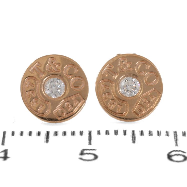Tiffany & Co 1837 Circle earrings with 2 round natural Diamonds totalling approximately 0.10ct. 18ct rose gold. Motif size: 8.2mm. Made in Italy. Weight: 2.4g. With Tiffany & Co box. (Pre-owned)