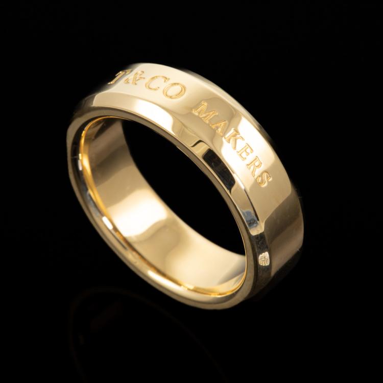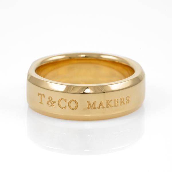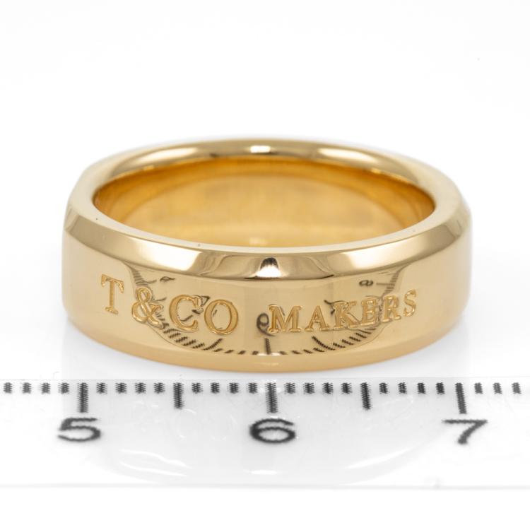 Tiffany & Co. 1837 Makers Medium slice ring. 18ct yellow gold. Ring size: P - ring resizing is not recommended. Band width: 6.8mm. Weight: 14.5g. With Tiffany & Co. gift receipt, Tiffany & Co. Service invoice dated 14/02/24, Tiffany & Co. box and shopping bag. (Pre-owned)