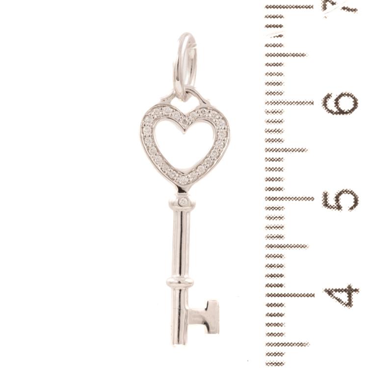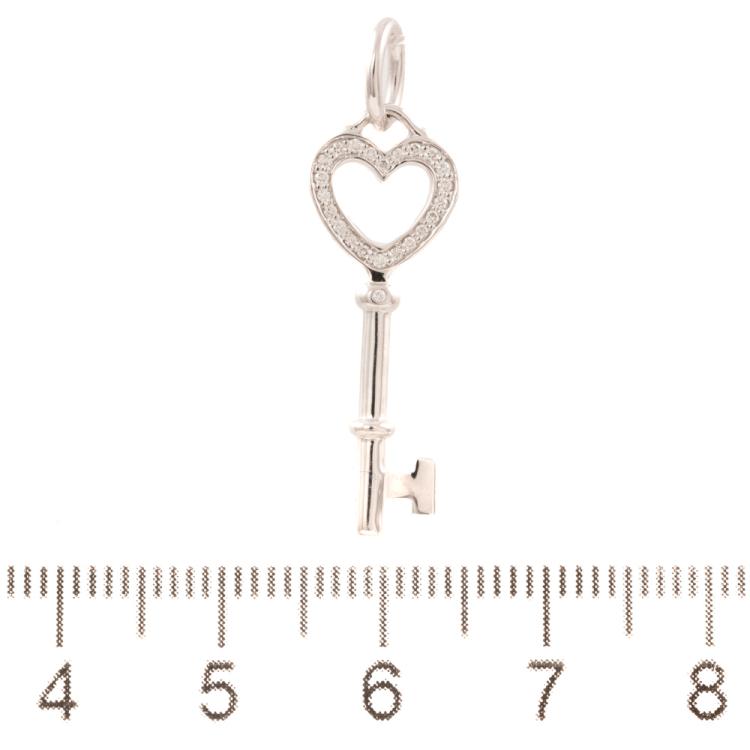 Tiffany & Co Heart Key mini pendant with round natural Diamonds totalling approximately 0.05ct. 18ct white gold. Length: 3.1cm. No chain provided. Weight: 1.9g. With Tiffany & Co box. With copy of Tiffany & Co order summary dated 07/12/18. (Pre-owned)