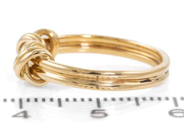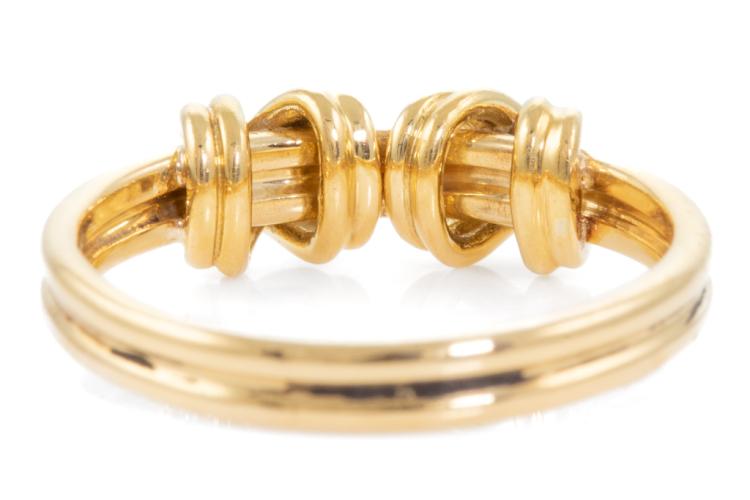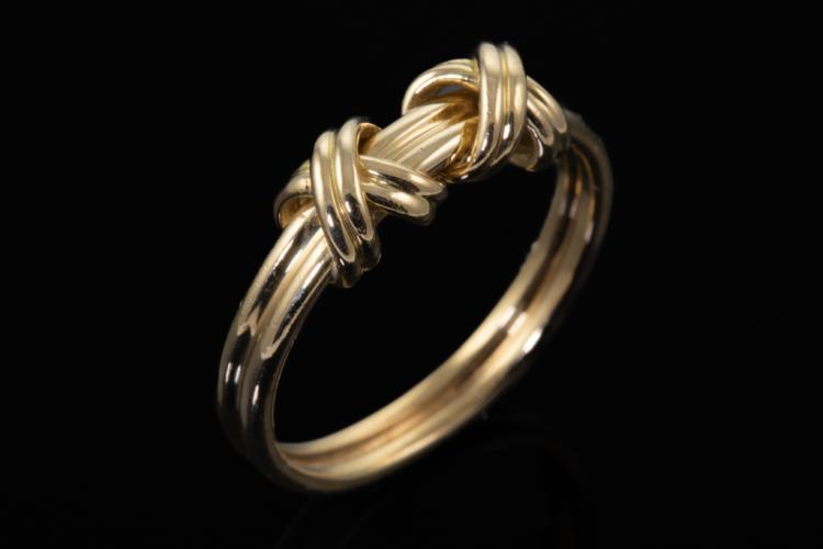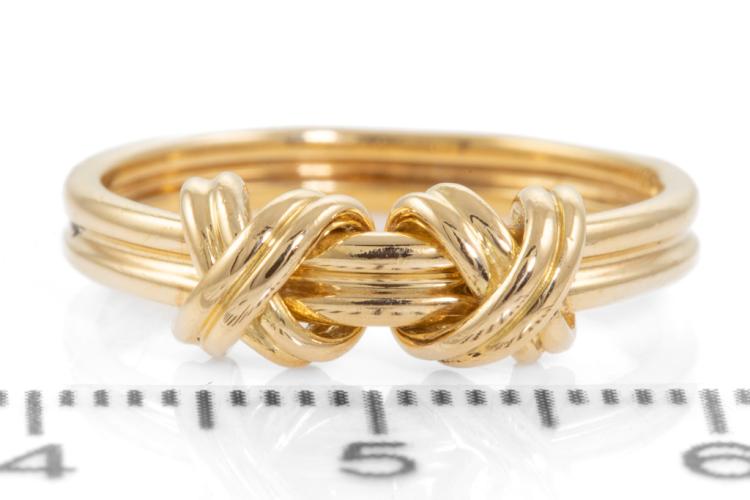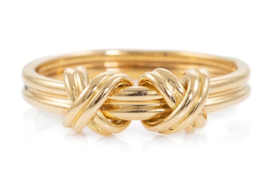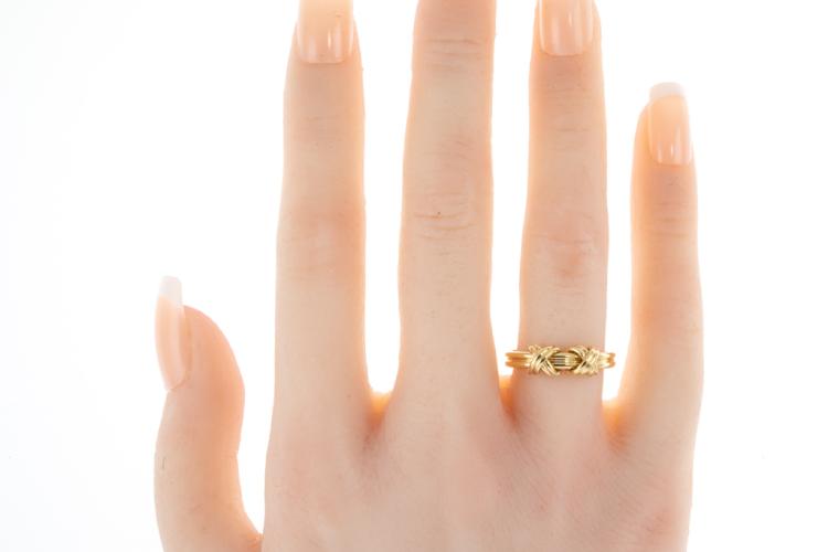 Tiffany & Co. Signature Double X ring. 18ct yellow gold. Ring size I1/2, - ring resizing is not recommended. 18ct yellow gold. Width: 2.8mm. Weight: 3.6g. (Pre-owned)
