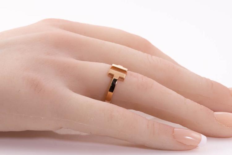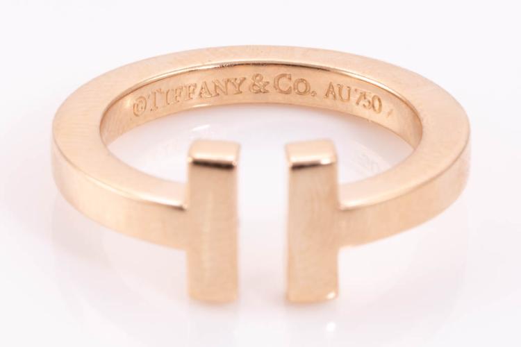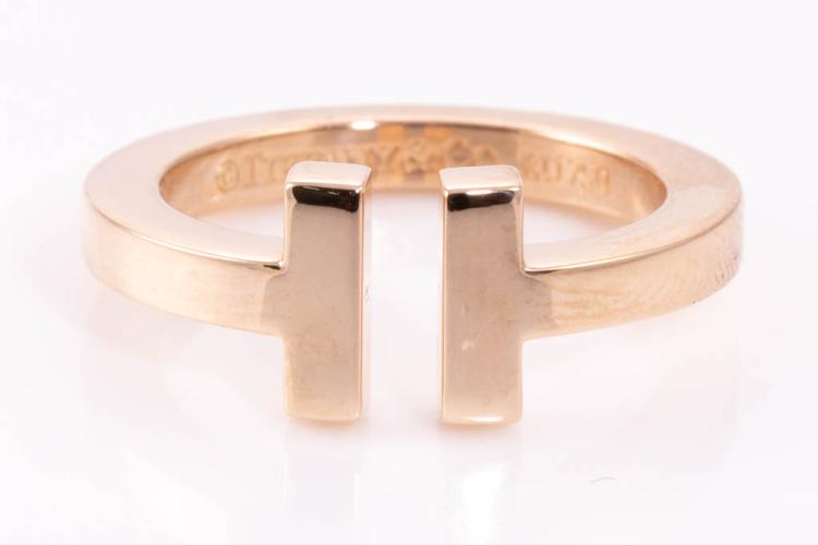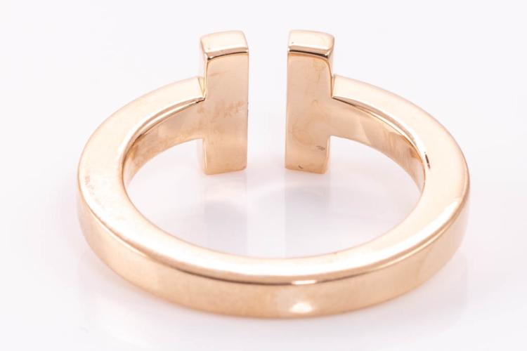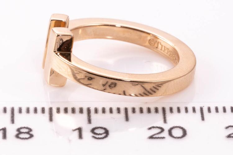 Tiffany & Co T Wire ring. 18ct rose gold. Ring size I1/2 - ring resizing is not recommended. Weight: 6.0g. (Pre-owned)