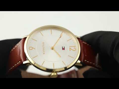 Tommy Hilfiger stainless steel quartz mens watch. Silver dial, case diameter: 40mm, strap length: 21cm, Swiss made. Ref# TH.305.1.34.2054. With Tommy brown leather strap and buckle. With Certificate of Authenticity. No warranty applies. (Pre-owned)