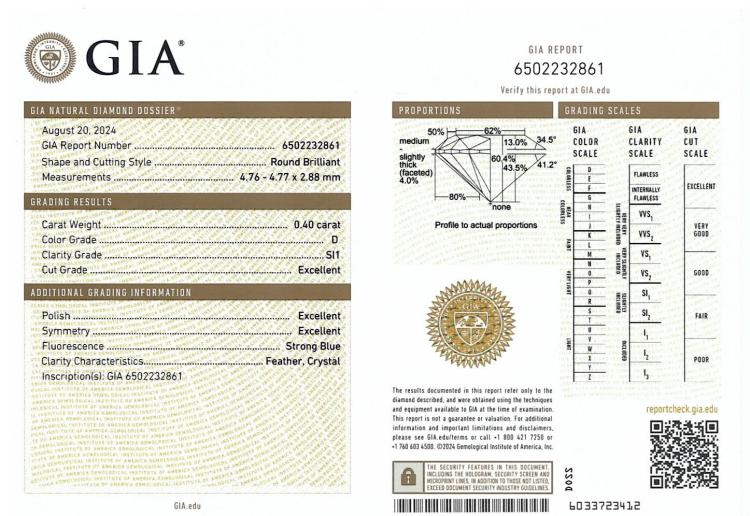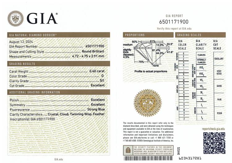 Diamond stud earrings with 2 round brilliant cut Natural Diamonds totalling 0.80ct (with GIA Summary Reports graded as D SI1 #6501171900, 6502232861). 18ct white gold. Weight: 0.9g. (New)