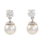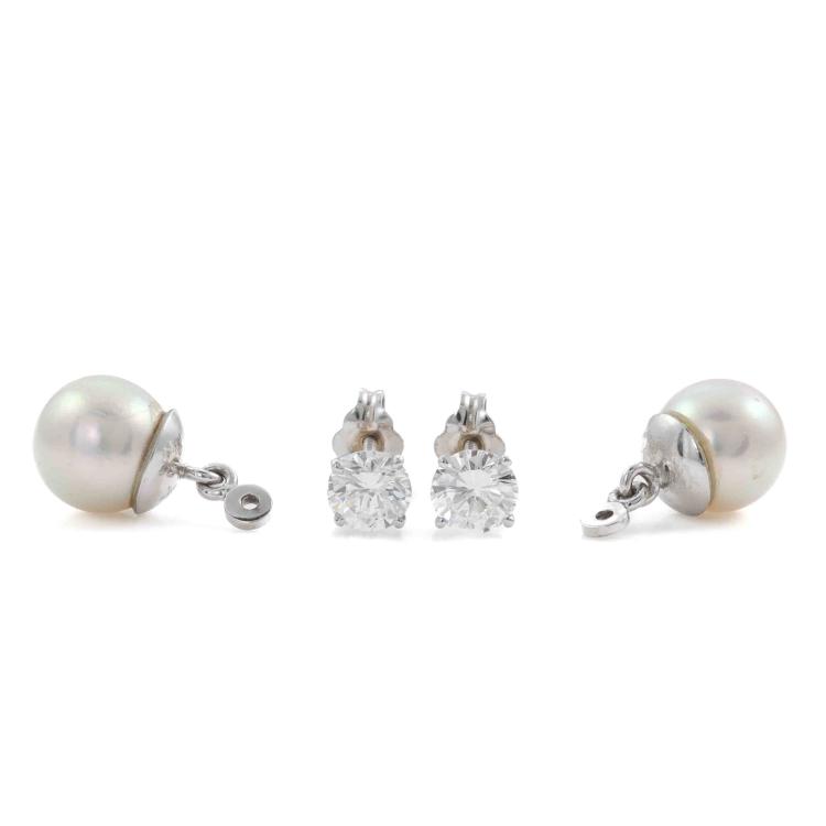 Diamond and Pearl detachable earrings with round natural Diamond totalling approximately 1.00ct (Estimated grading: G VS-SI) and 2 detachable Cultured Pearls of 8.2mm-8.4mm. 14ct white gold. Weight 3.7g. (Pre-Owned)