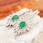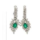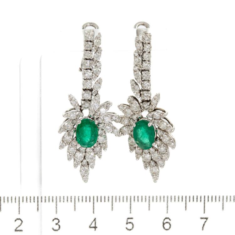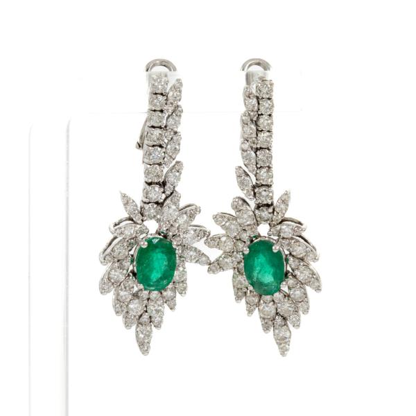 Emerald and Diamond clip-on (for pierced ears) earrings with 2 oval shape Natural Zambian Emeralds totalling 2.08cts (with GSL memo #AA68594-3) and round Natural Diamonds totalling 3.75cts (Estimated grading: H-I P1). 18ct white gold. Length: 4cm. Weight: 12.4g (Pre-owned)