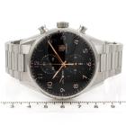 TAG Heuer Carrera stainless steel automatic mens watch. Black chronograph dial, date, case diameter: 43mm, wrist size: 19cm, Swiss made. Ref# CAR2014-4. With TAG Heuer stainless steel bracelet and clasp. With Certificate of Authenticity, TAG Heuer International Guarantee card dated 28/11/2016 and TAG Heuer box. 3 month FSA warranty. (Pre-owned)