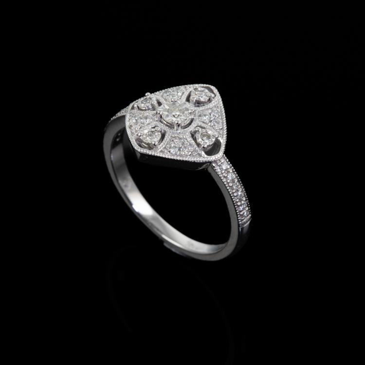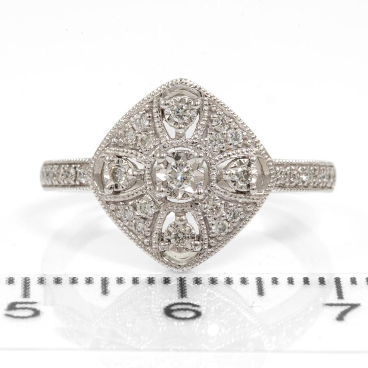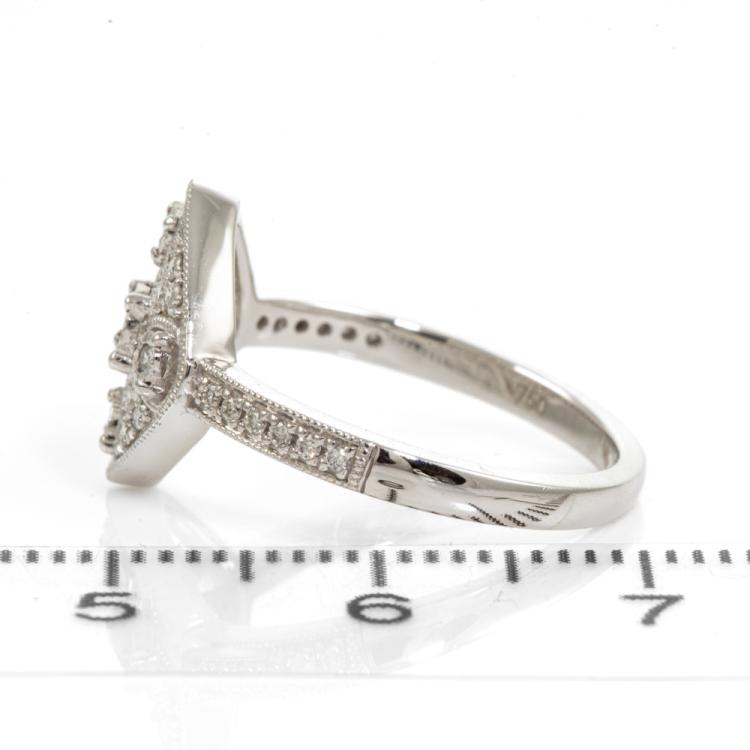 Diamond dress ring with round Natural Diamonds totalling 0.25ct. 18ct white gold. Ring size: N1/2. Band width: 1.7mm. Weight: 3.8g. (As New)