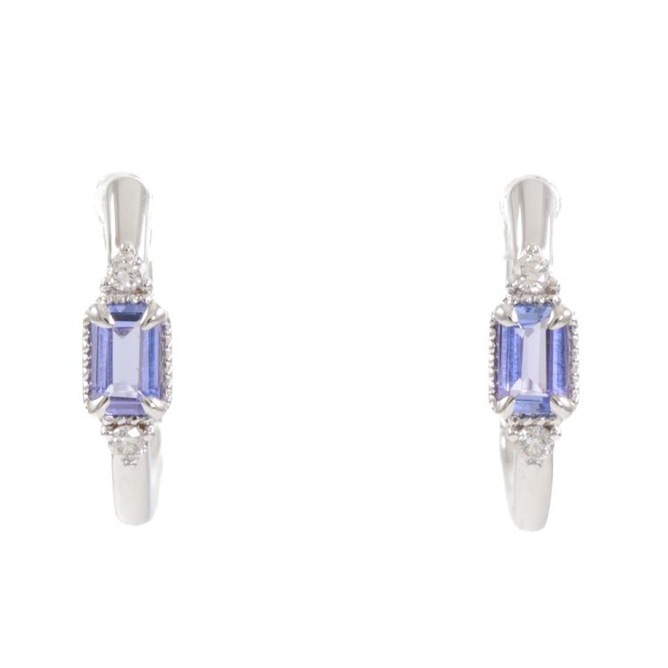 Tanzanite and Diamond huggie earrings with baguette cut Natural Tanzanite totalling 0.30ct and round Natural Diamonds totalling 0.06ct. 18ct white gold. Weight: 2.8g. (New)