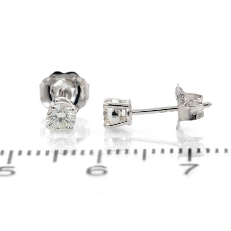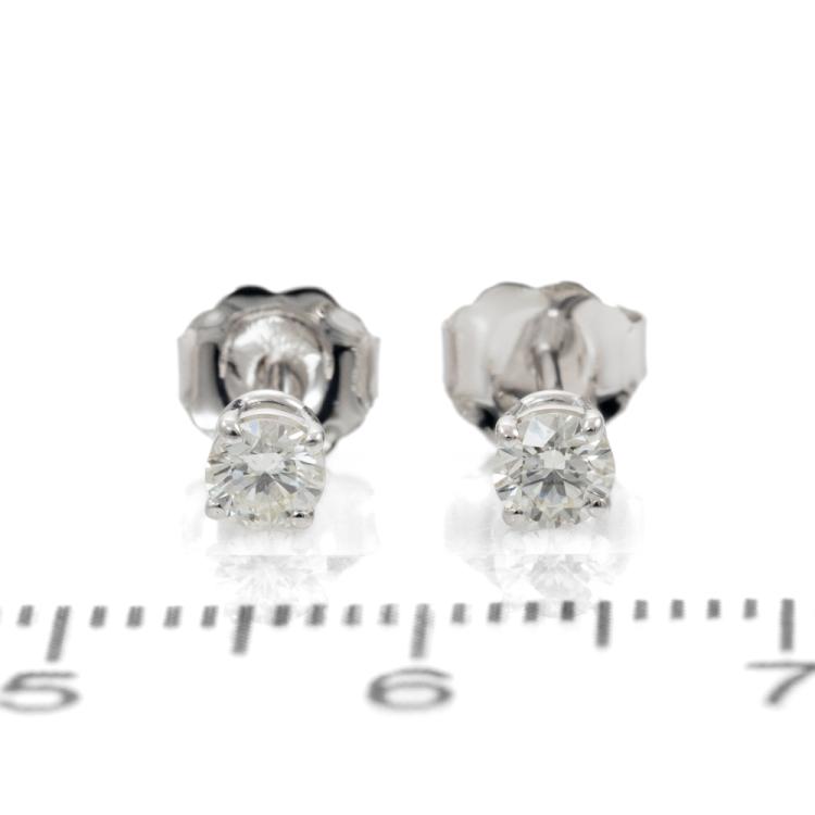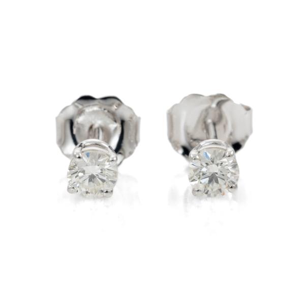 Diamond stud earrings with 2 round brilliant cut natural Diamonds totalling 0.31ct (Estimated grading: J SI). 18ct white gold. Weight 0.6g. (New)