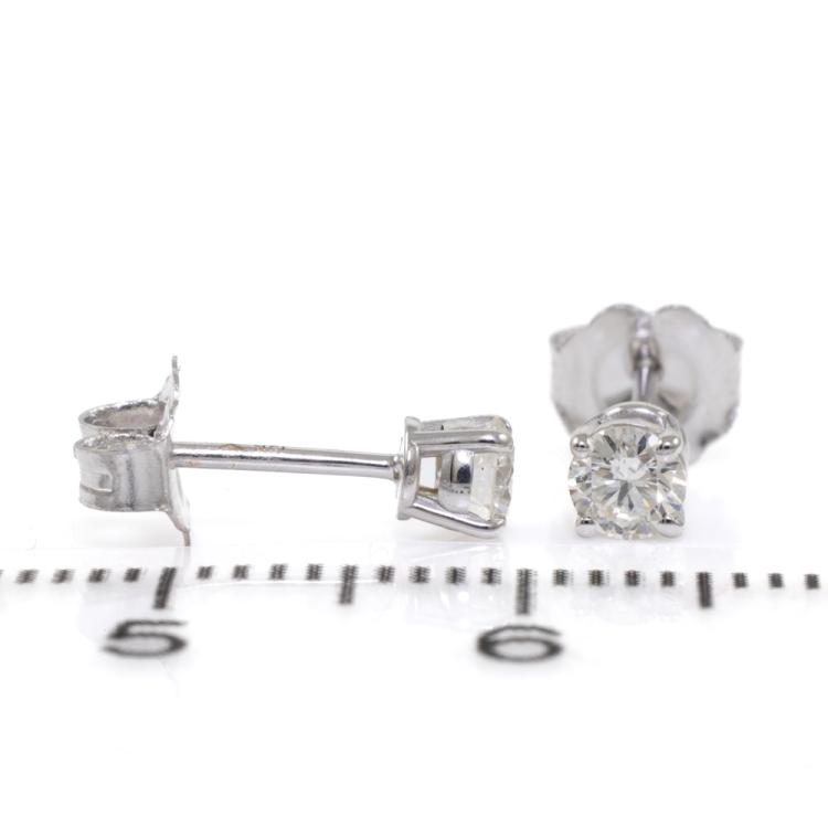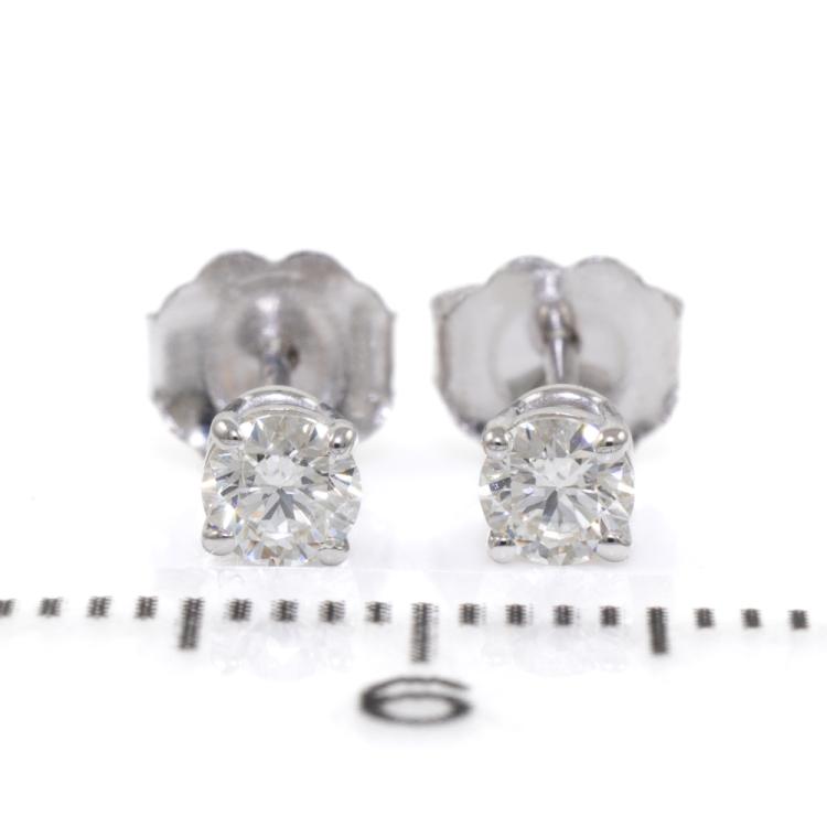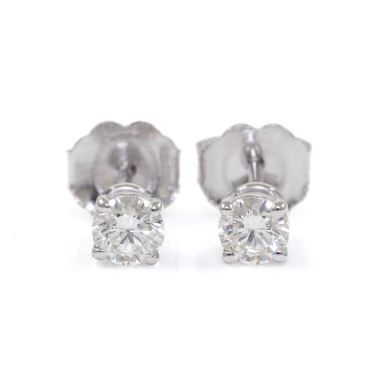 Diamond stud earrings with 2 round brilliant cut natural Diamonds totalling 0.32ct (Estimated grading: J SI2). 18ct white gold. Weight 0.7g. (New)