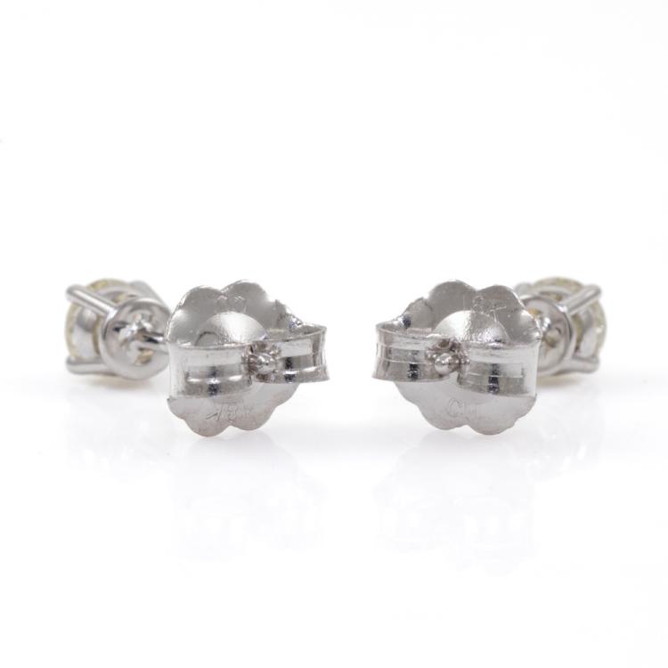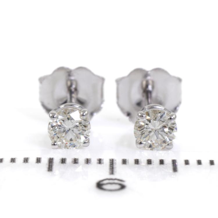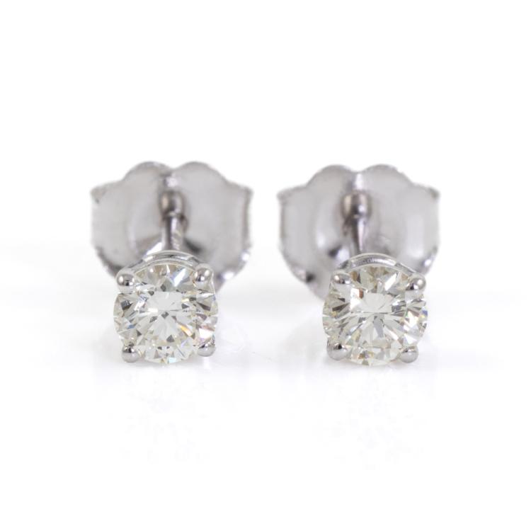 Diamond stud earrings with 2 round brilliant cut natural Diamonds totalling 0.35ct (Estimated grading: J-K SI). 18ct white gold. Weight 0.6g. (New)