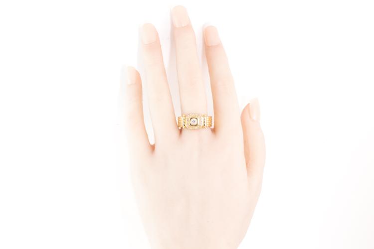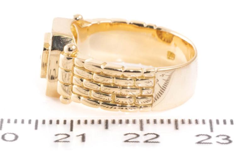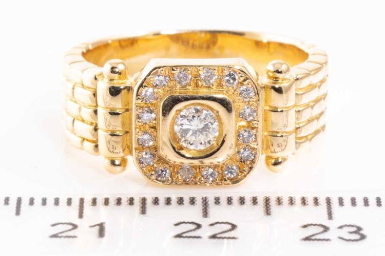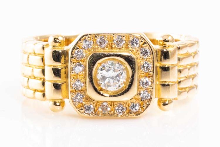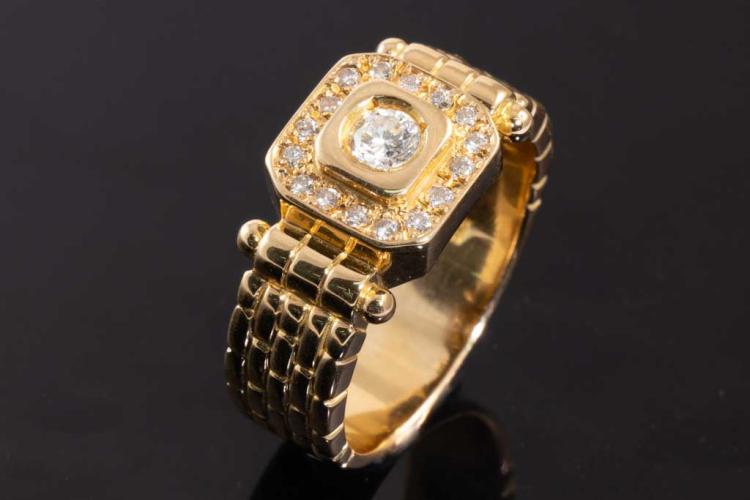 Mens ring with round natural Diamonds totalling 0.36ct (Estimated grading: G-H SI). 18ct yellow gold. Ring size Q. Weight: 12.1g. (Pre-owned)