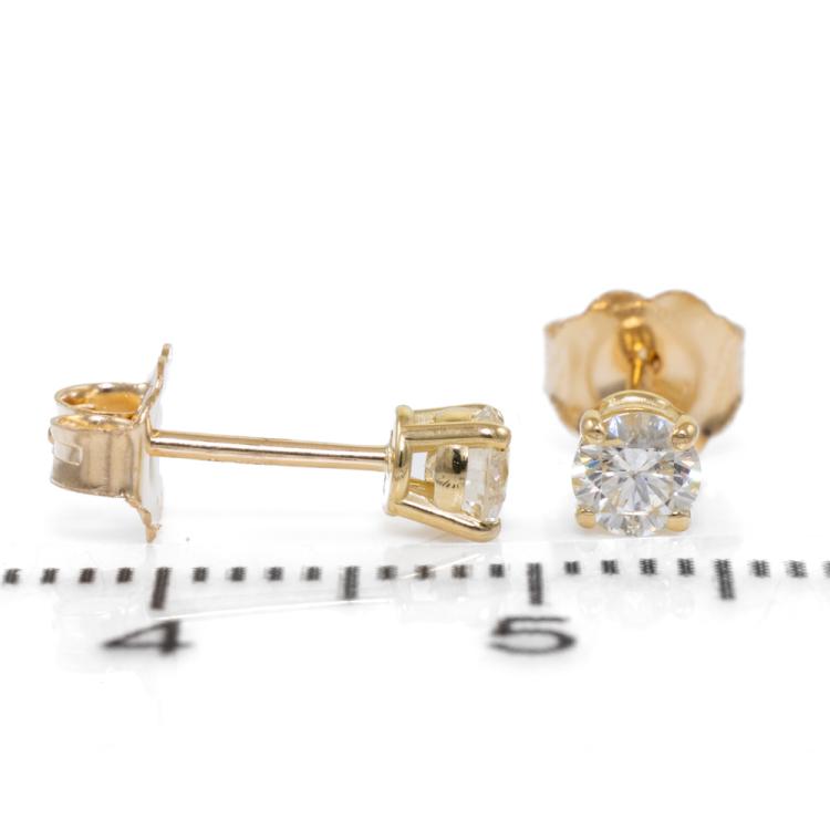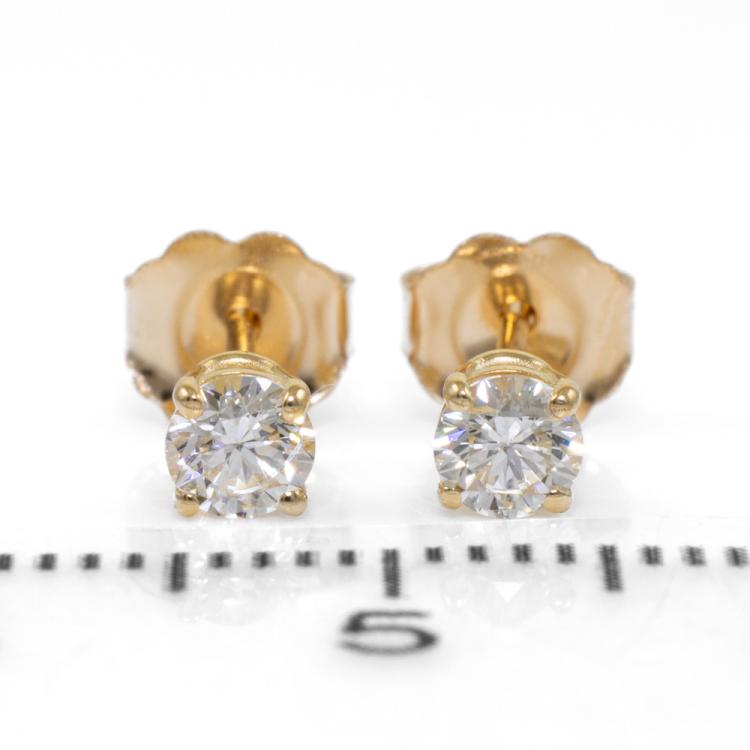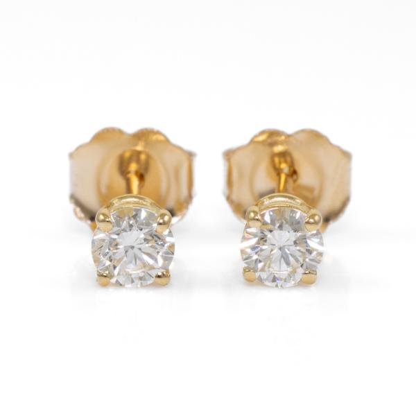 Diamond stud earrings with 2 round brilliant cut Natural Diamonds totalling 0.36ct (Estimated grading: J SI). 18ct yellow gold. Weight 0.7g. (New)