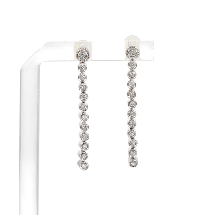 Diamond drop earrings with round natural Diamonds totalling 0.40ct (Estimated grading: H SI). 18ct white gold with silicon backs. Drop length: approx. 3.5cm. Weight: 5.3g. (Pre-owned)