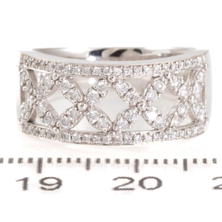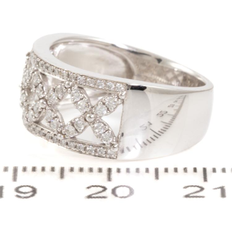 Diamond dress ring with round Natural Diamonds totalling 0.50ct (Estimated grading: G-H SI). 18ct white gold. Ring size: M. Band width: 8.4mm - 4.9mm. Weight: 6.8g. (As New)