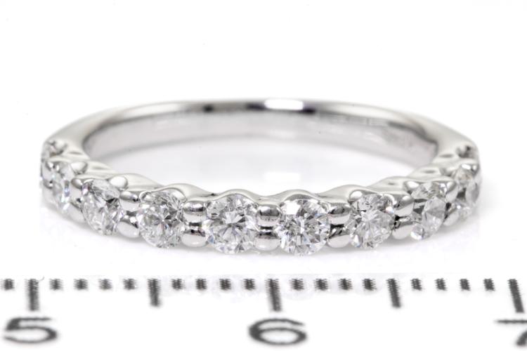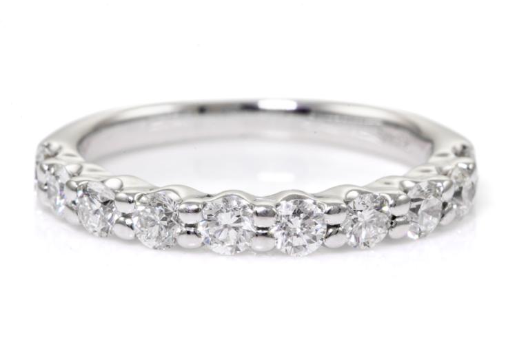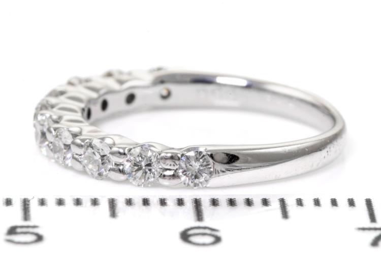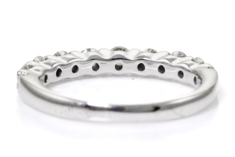 Diamond eternity ring with 10 round Natural Diamonds totalling 0.50ct (Estimated grading: G-H SI). 18ct white gold. Ring size H - ring resizing is not recommended. Weight: 2.3g. (Pre-owned)