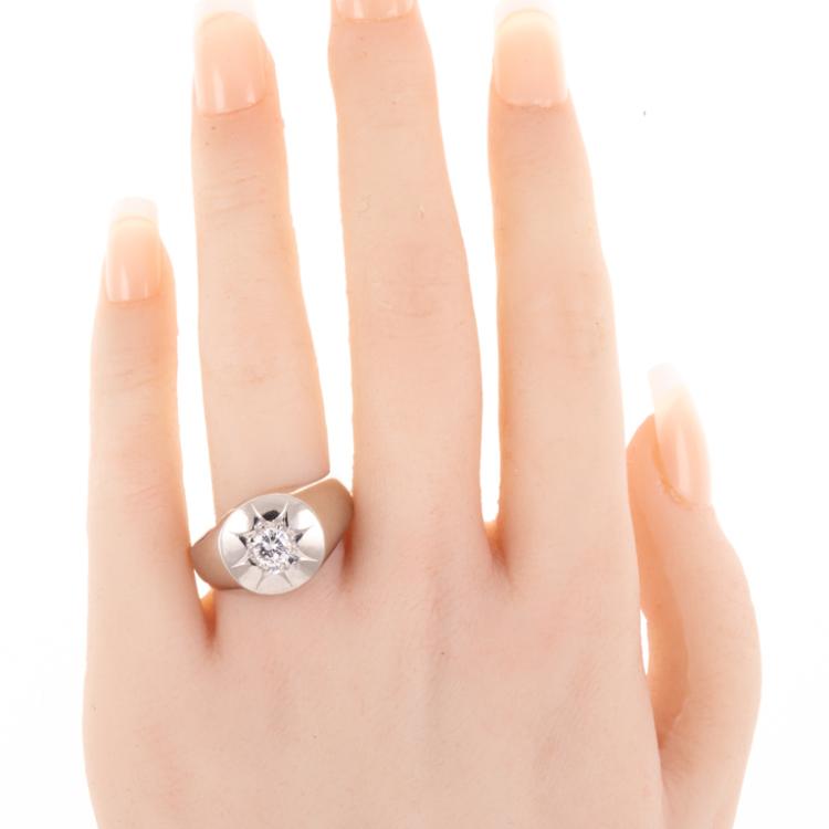 Diamond mens ring with a round Diamond of 0.50ct (Estimated grading: H SI) Platinum - 850. Ring size V1/2. Band width: 5.8mm - 7.6mm. Weight: 21.8g. (Pre-owned)