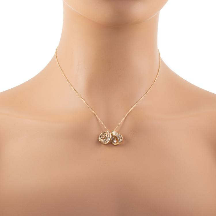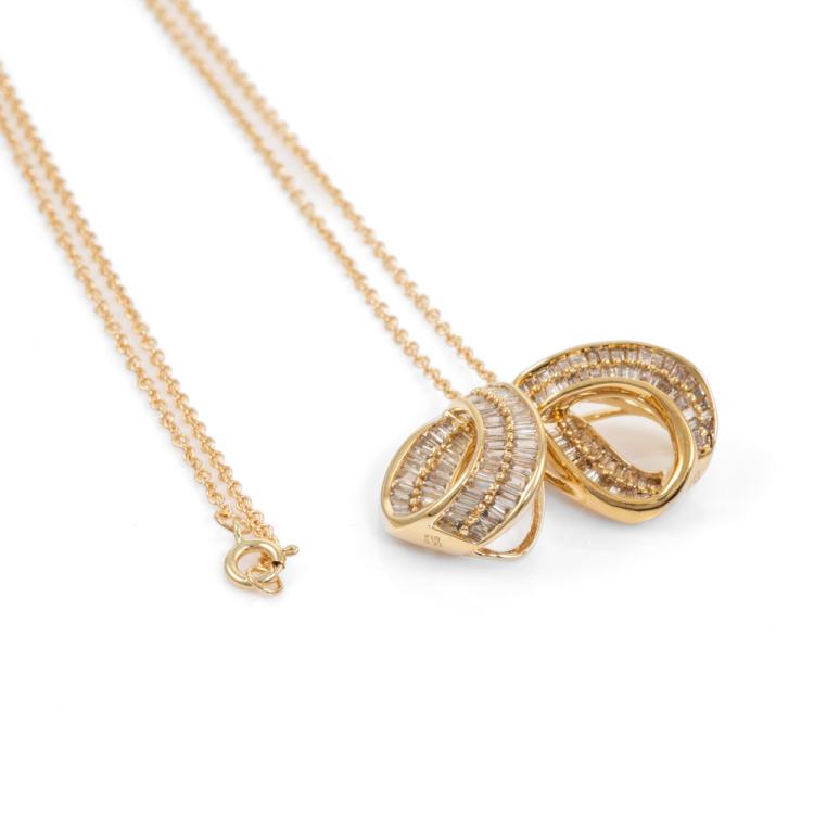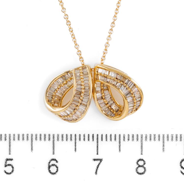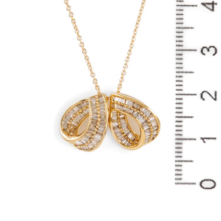 Diamond Dress pendant with 2 individual pendants, with baguette cut Natural Diamonds totalling 0.60ct (Estimated grading: I-J SI). 18ct yellow gold with 14ct yellow gold 40.0cm chain. Weight: 5.2g. (Pre-owned)