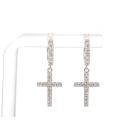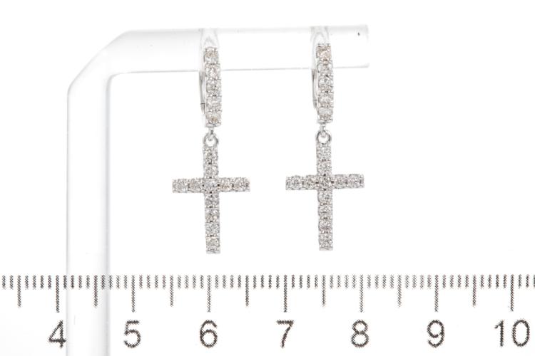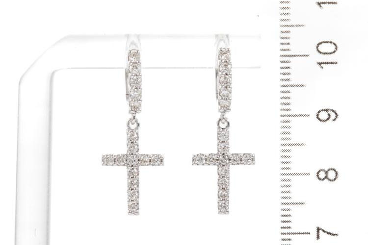 Diamond cross hoop earrings with 32 round Natural Diamonds totalling 0.67ct (Estimated grading: I-J SI). 14ct white gold. Weight: 3.5g. (New).