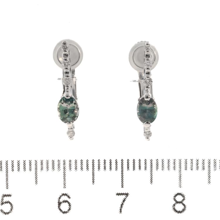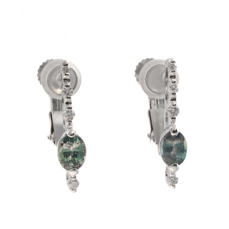 Alexandrite and Diamond clip-on earrings (for non-pierced ears) with oval shape Natural Alexandrite totalling 0.70ct (moderate colour change from bluish green to brownish red) and round Natural Diamonds totalling 0.10ct. Platinum 550 and 8ct white gold backs (XRF tested, Stamped "Pt900 & K14WG). Weight: 2.9g. (Pre-owned)