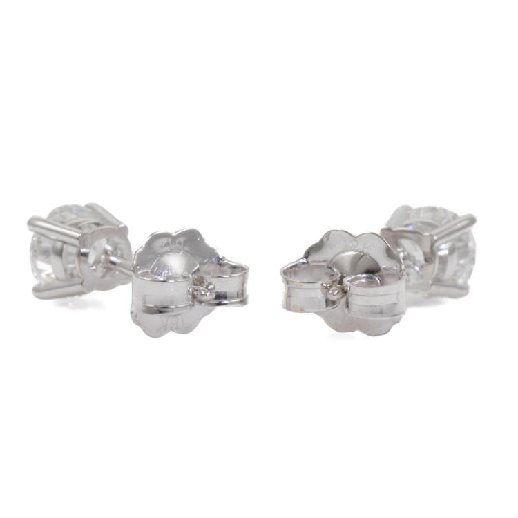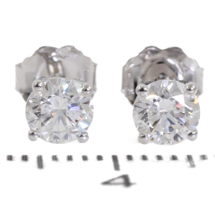 Diamond stud earrings with 2 round brilliant cut natural Diamonds totalling 0.80ct (with GIA Summary Reports graded as D SI1 #6491587669, 1498535254). 18ct white gold. Weight: 0.9g. (New)