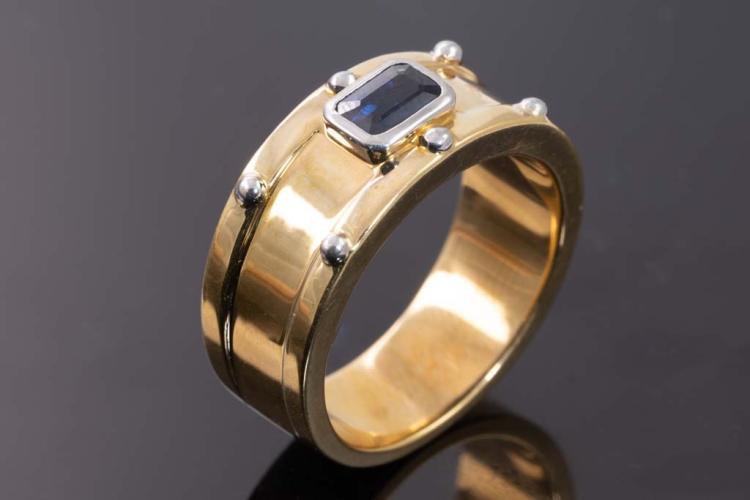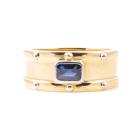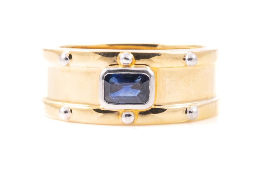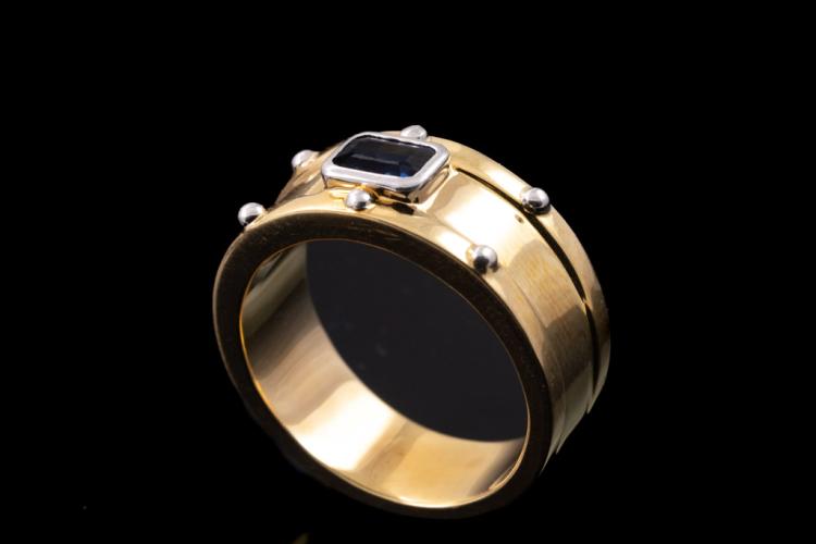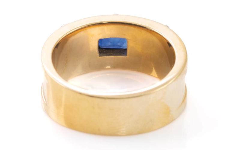 Sapphire ring with emerald cut blue Sapphire of 0.83ct. 18ct yellow gold and platinum-900. Ring size R. Weight: 16.6g. (Pre-owned)