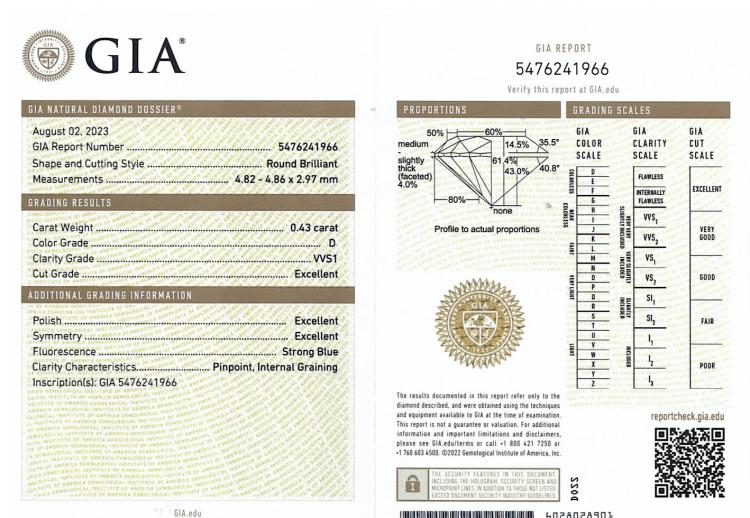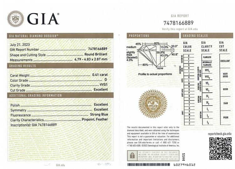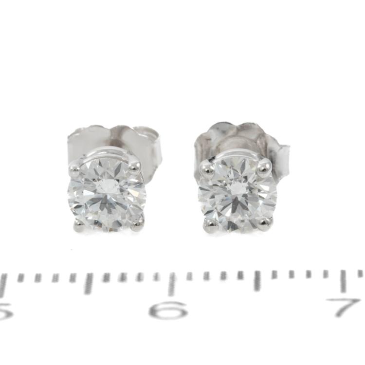 Diamond stud earrings with 2 round brilliant cut natural Diamonds totalling 0.84ct (with GIA Summary Reports graded as D VVS1 #5476241966, 7478166889). 18ct white gold. Weight: 1.1g (New)