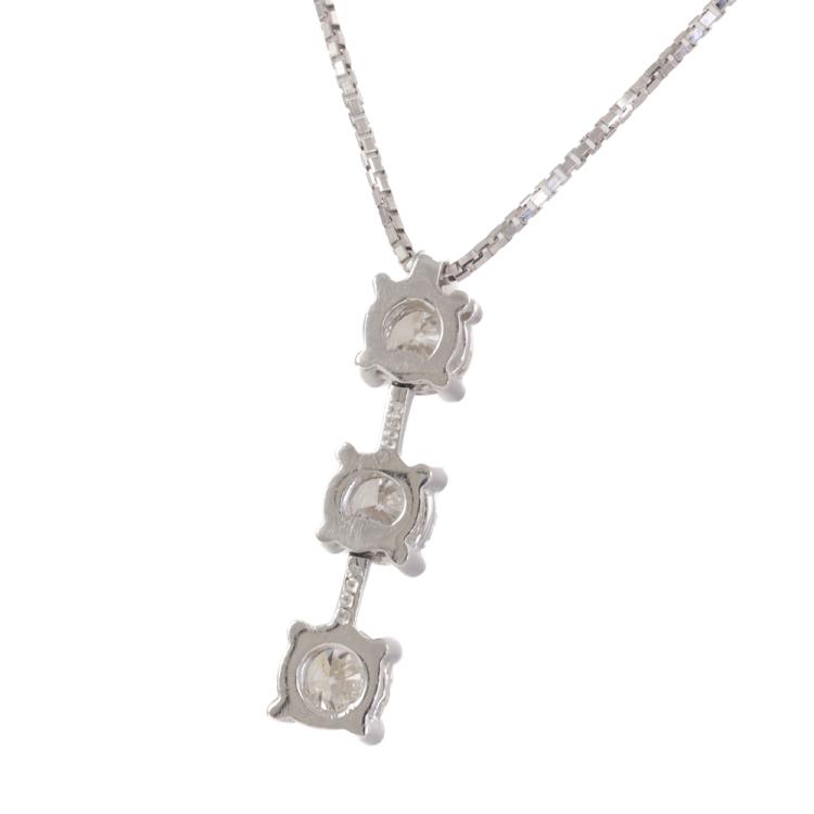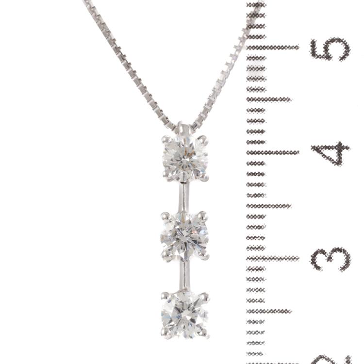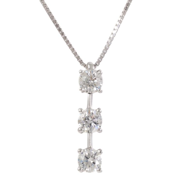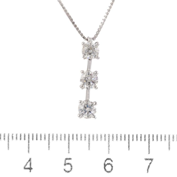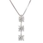 Diamond drop pendant with 3 round brilliant cut natural Diamonds totalling 1.00ct (Estimated grading: G-H SI). Platinum-900 with 45cm 18ct white gold chain. Weight: 4.1g. (Pre-owned)