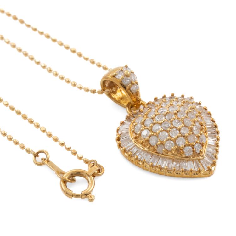 Diamond heart pendant with baguette cut & round Natural Diamonds totalling 1.00ct (Estimated grading: H-