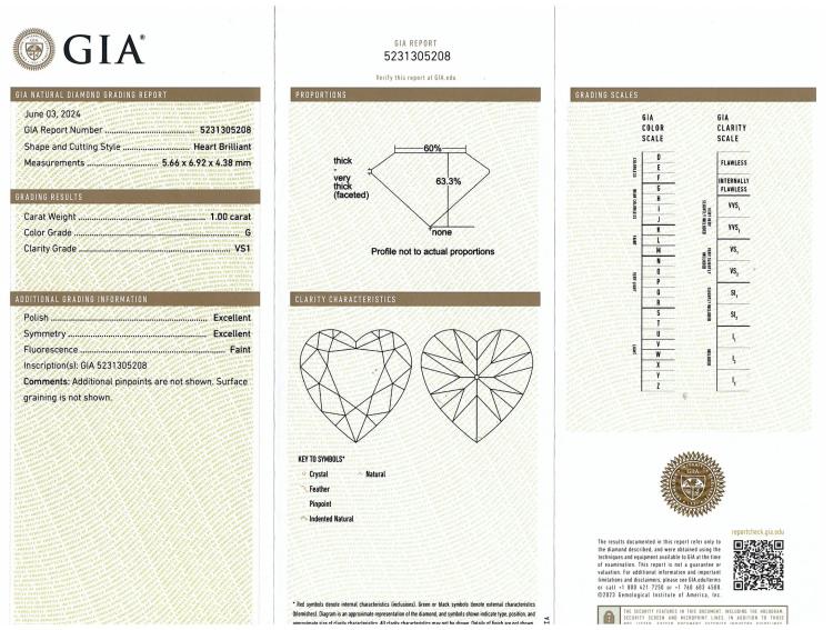 A loose heart shape natural Diamond of 1.00ct (with GIA report graded as G VS1 #5231305208