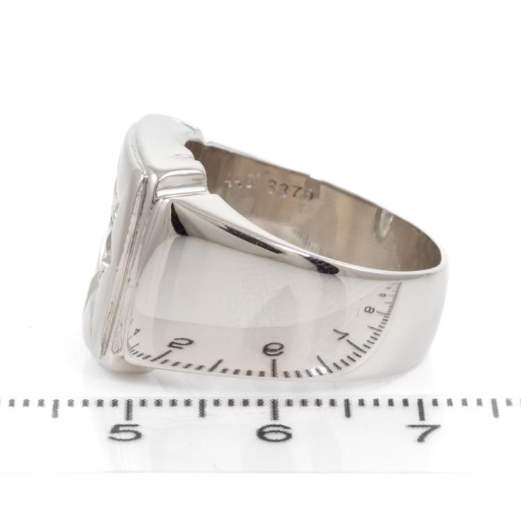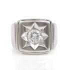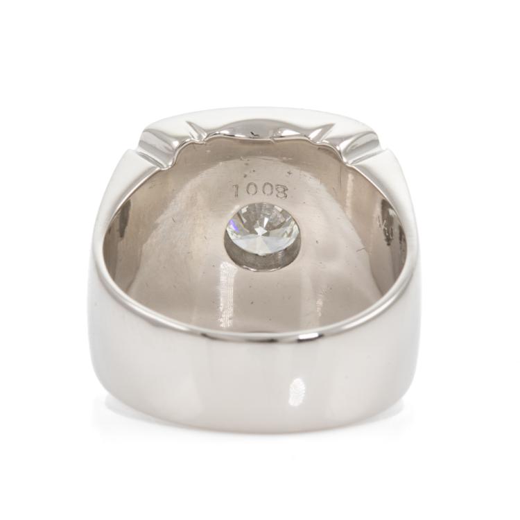 Mens ring with a round natural Diamond of 1.00ct (Estimated grading: H-I P1). Platinum 900. Ring size S. Band width: 7.3 - 12.9mm. Weight: 36.3g. With Certificate #418581. (Pre-owned)
