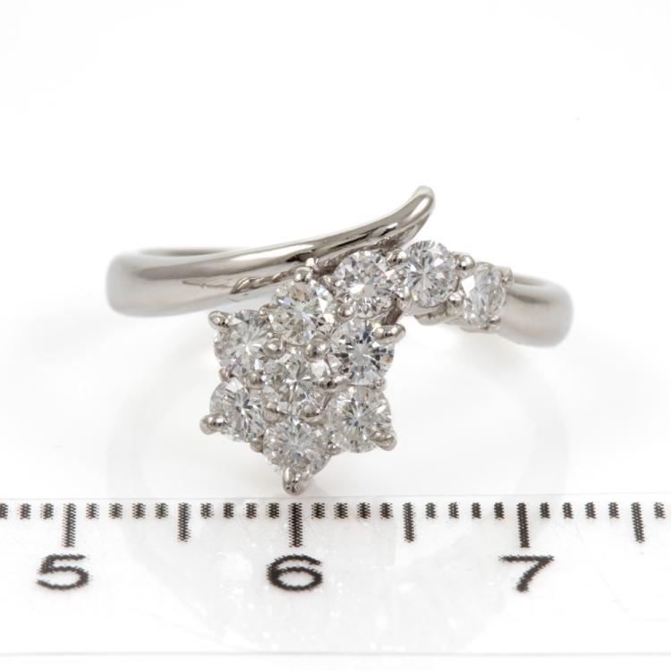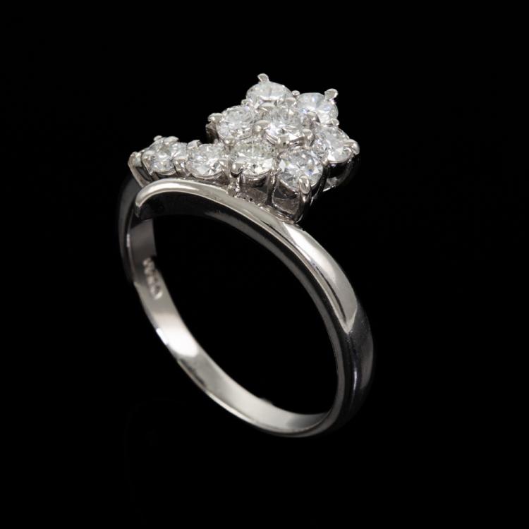 Diamond ring with round natural Diamonds totalling 1.04ct (Estimated grading: G-H SI). Platinum 900. Ring size P1/2 - ring resizing is not recommended. Band width: 2.2mm - 2.5mm. Weight: 6.4g. (Pre-owned)