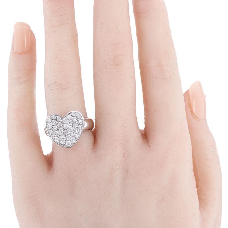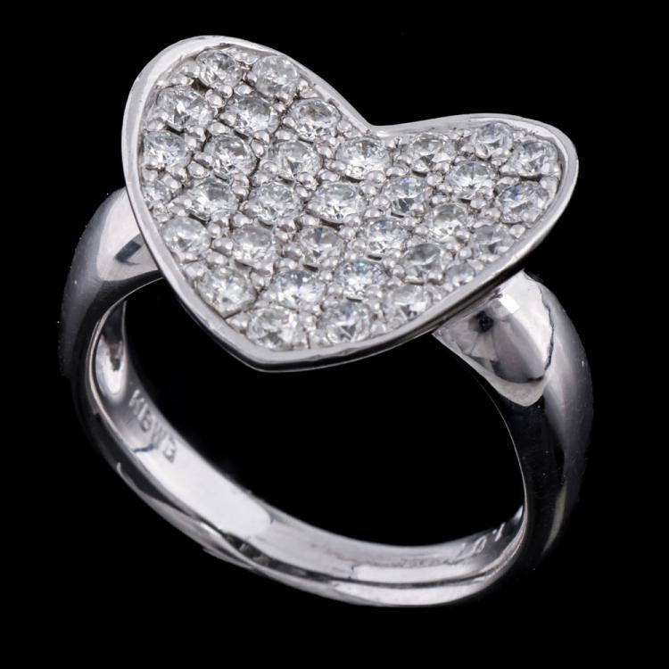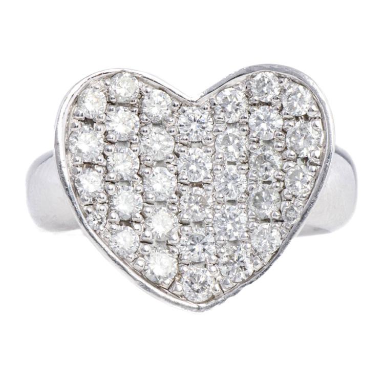 Diamond heart design ring with round Natural Diamonds totalling 1.07ct (Estimated grading: G-H VS-SI). 18ct white gold. Ring size M. Weight: 8.6g (Pre-owned)