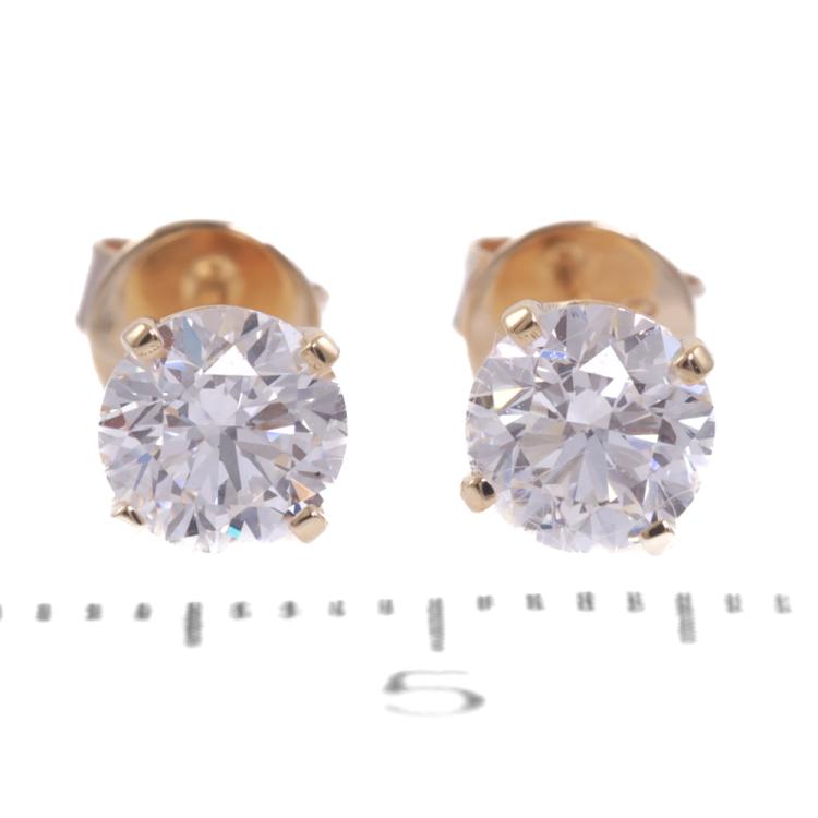 Diamond stud earrings with 2 round brilliant cut Natural Diamonds totalling 1.11ct (with GIA Summary Reports graded as E Internally Flawless #1473479368, 2477798093). 18ct yellow gold. Weight: 1.6g. (New)