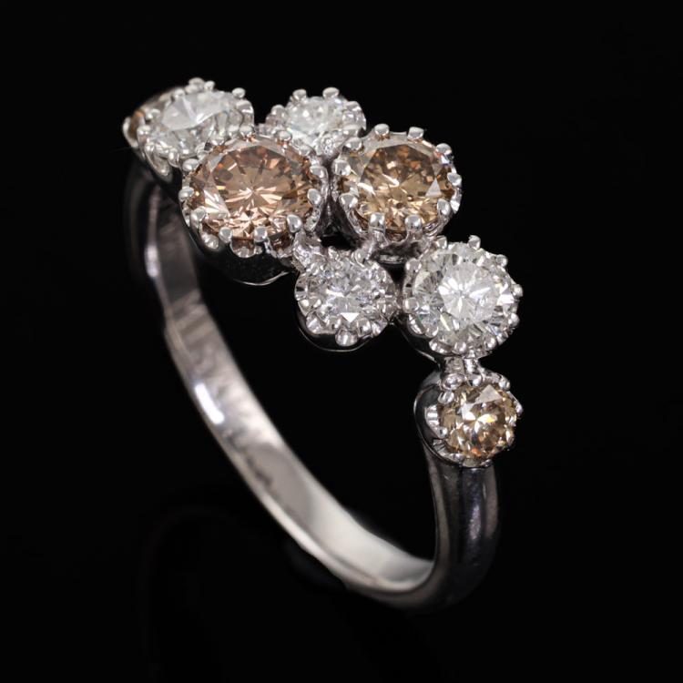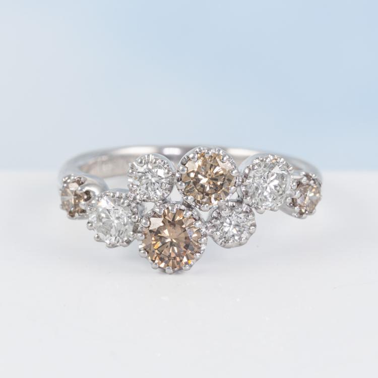 Misaki Diamond dress ring with 8 round Natural Diamond totalling 1.12ct (Estimated grading: cognac, Champagne & G SI-P1). Platinum-900. Ring size: J1/2. Band width: 2.1mm - 2.4mm. Weight: 4.9g. (Pre-owned)